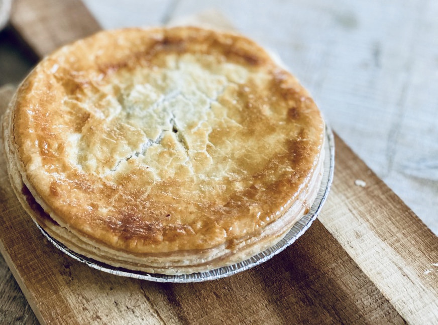 Round pastry that contains Mince with a gravy sauce, none of that thin gravy